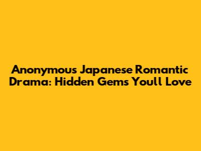 Anonymous Japanese Romantic Drama: Hidden Gems You'll Love