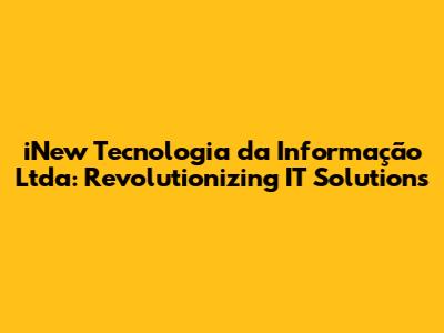 INew Tecnologia: Revolutionizing IT Solutions