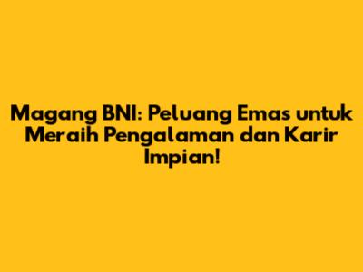 Guys, lagi pada cari pengalaman kerja yang kece sekaligus membuka jalan buat karir impian? Magang BNI bisa jadi jawaban yang tepat banget, nih! BNI (Bank Negara Indonesia) emang dikenal sebagai salah satu bank terbesar di Indonesia yang selalu membuka kesempatan magang buat kalian, anak muda yang penuh semangat. Yuk, kita kupas tuntas serba-serbi lowongan kerja magang BNI ini, mulai dari persyaratan, keuntungan, hingga tips-tips jitu biar lolos seleksi.