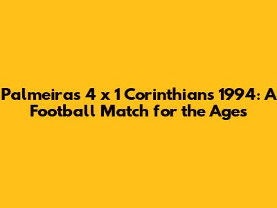 Palmeiras 4 X 1 Corinthians 1994: A Football Match For The Ages
