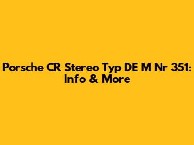 Porsche CR Stereo Typ DE M Nr 351: Info & More